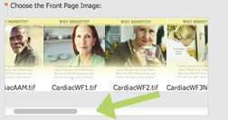 10. Some brochures have multiple options for a photo on the front cover. To choose a photo, scroll through the choices and then click the one you want. The preview will update with your choice.